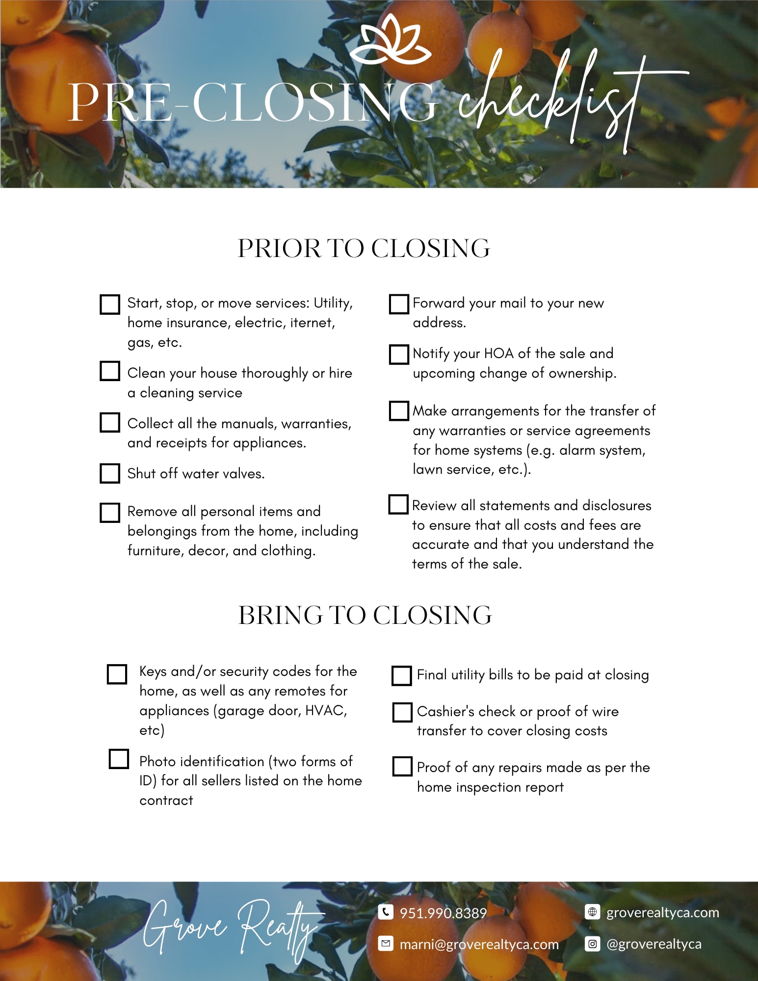 PRE-CLOSING CHECKLIST